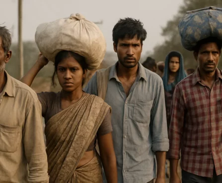 Familles indiennes cherchent des secours face à la pénurie.